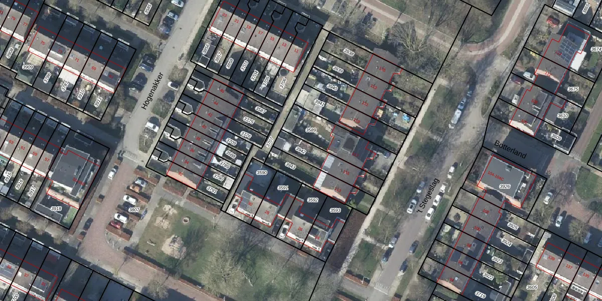 Gebruik de zoekbalk of klik op een perceel om informatie over het perceel te bekijken.