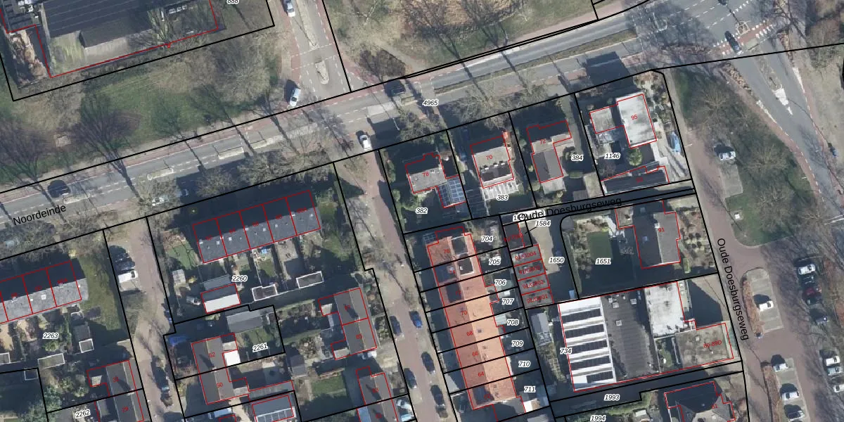 Gebruik de zoekbalk of klik op een perceel om informatie over het perceel te bekijken.