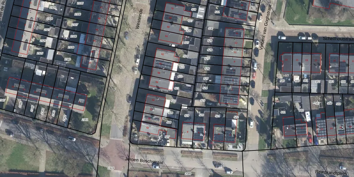 Gebruik de zoekbalk of klik op een perceel om informatie over het perceel te bekijken.