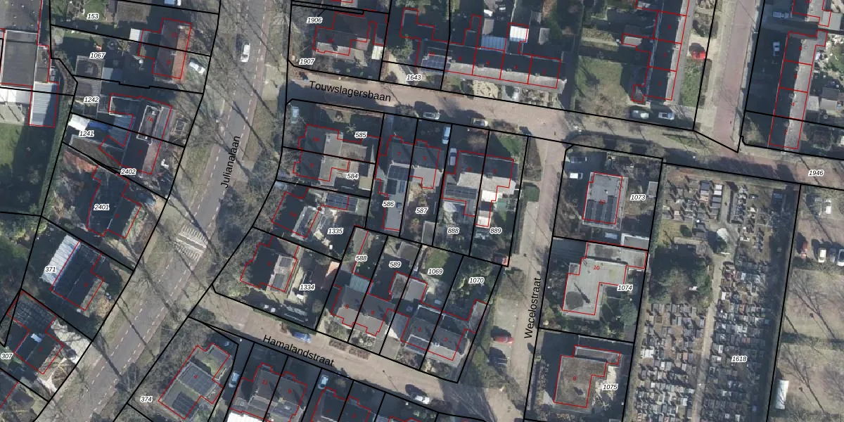 Gebruik de zoekbalk of klik op een perceel om informatie over het perceel te bekijken.