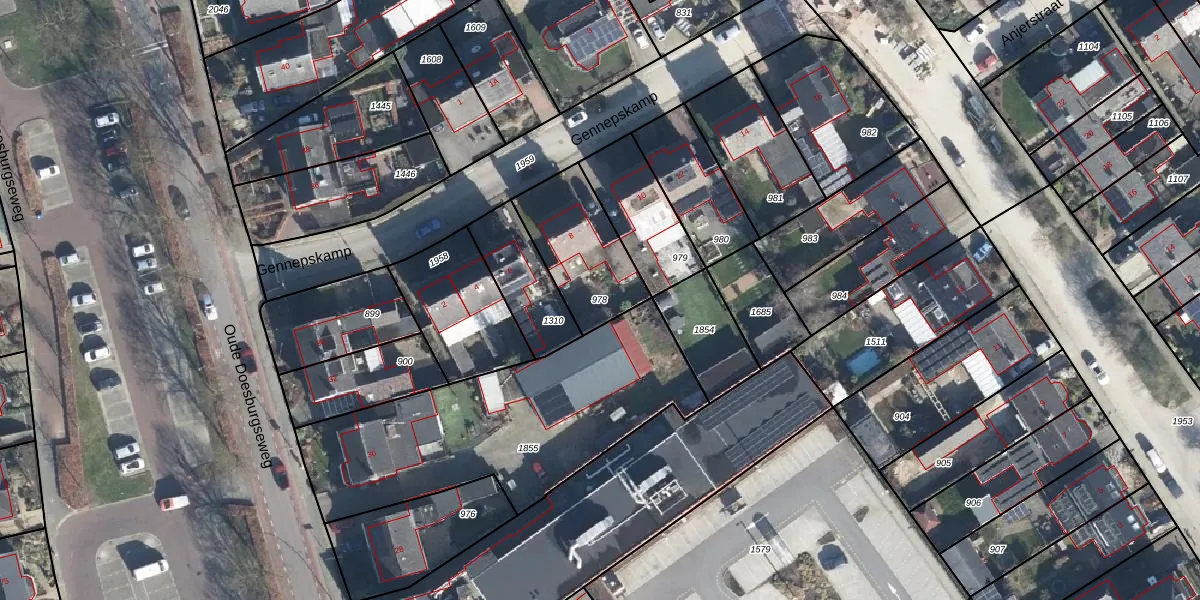 Gebruik de zoekbalk of klik op een perceel om informatie over het perceel te bekijken.