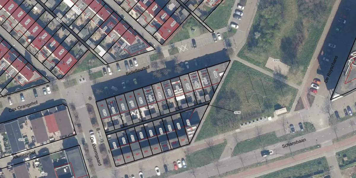 Gebruik de zoekbalk of klik op een perceel om informatie over het perceel te bekijken.