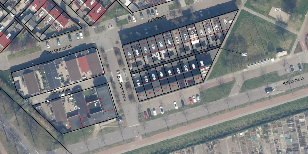 Gebruik de zoekbalk of klik op een perceel om informatie over het perceel te bekijken.