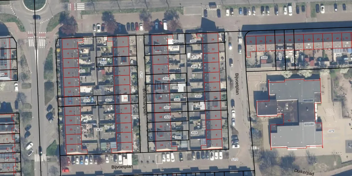 Gebruik de zoekbalk of klik op een perceel om informatie over het perceel te bekijken.