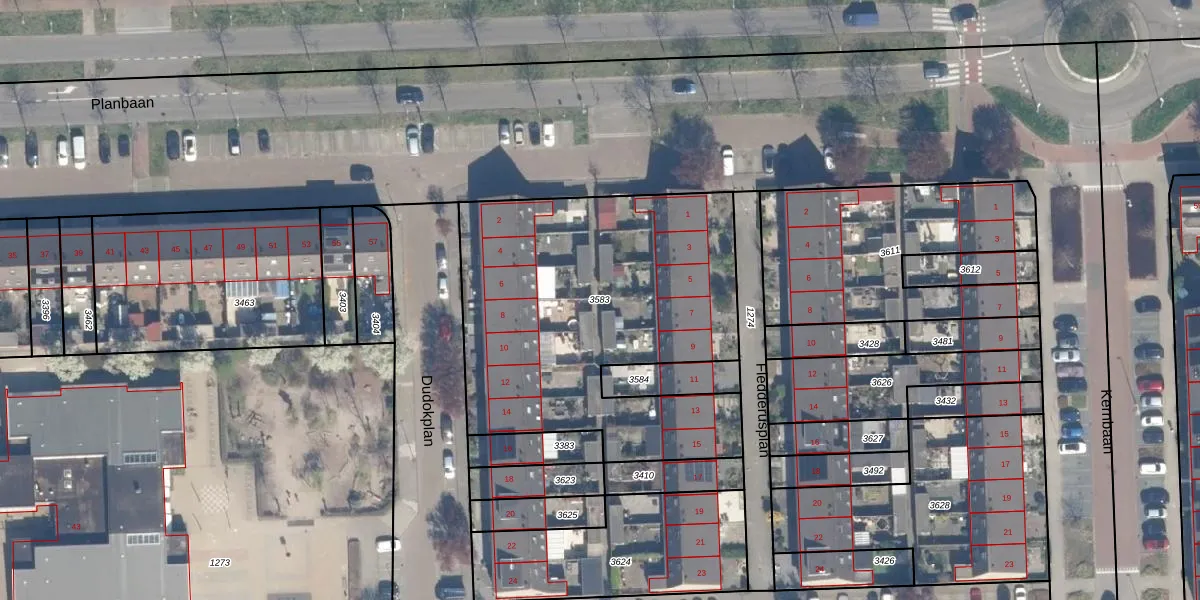 Gebruik de zoekbalk of klik op een perceel om informatie over het perceel te bekijken.