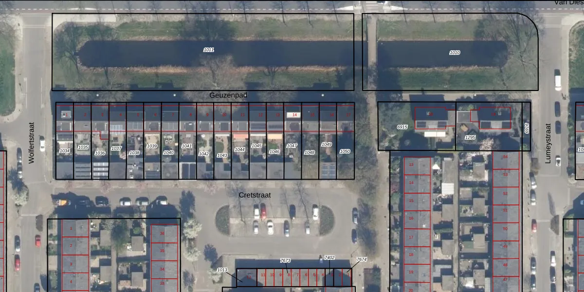 Gebruik de zoekbalk of klik op een perceel om informatie over het perceel te bekijken.