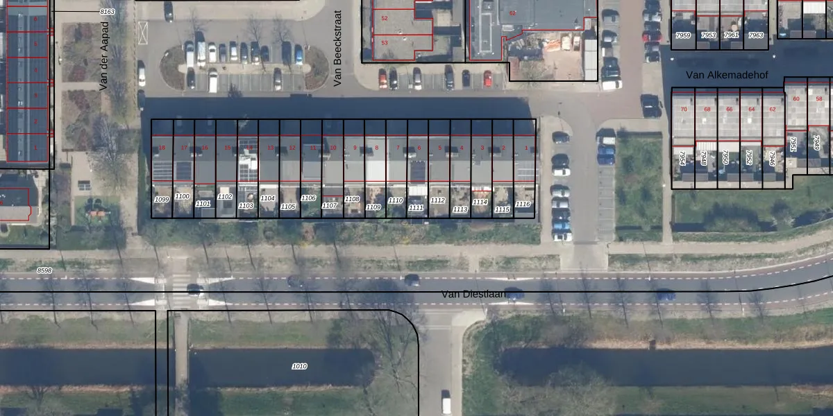 Gebruik de zoekbalk of klik op een perceel om informatie over het perceel te bekijken.