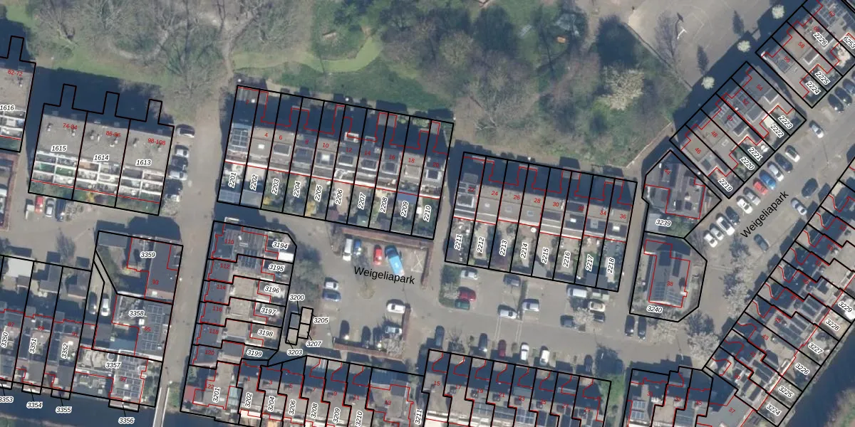 Gebruik de zoekbalk of klik op een perceel om informatie over het perceel te bekijken.