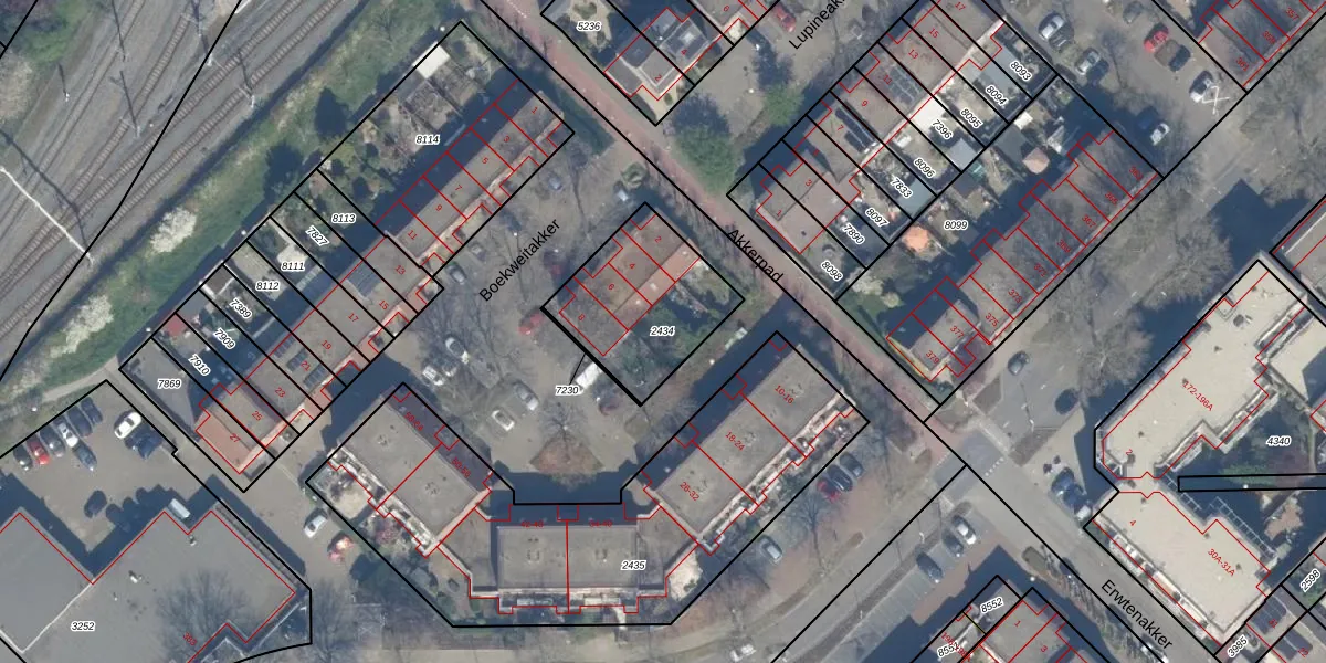 Gebruik de zoekbalk of klik op een perceel om informatie over het perceel te bekijken.