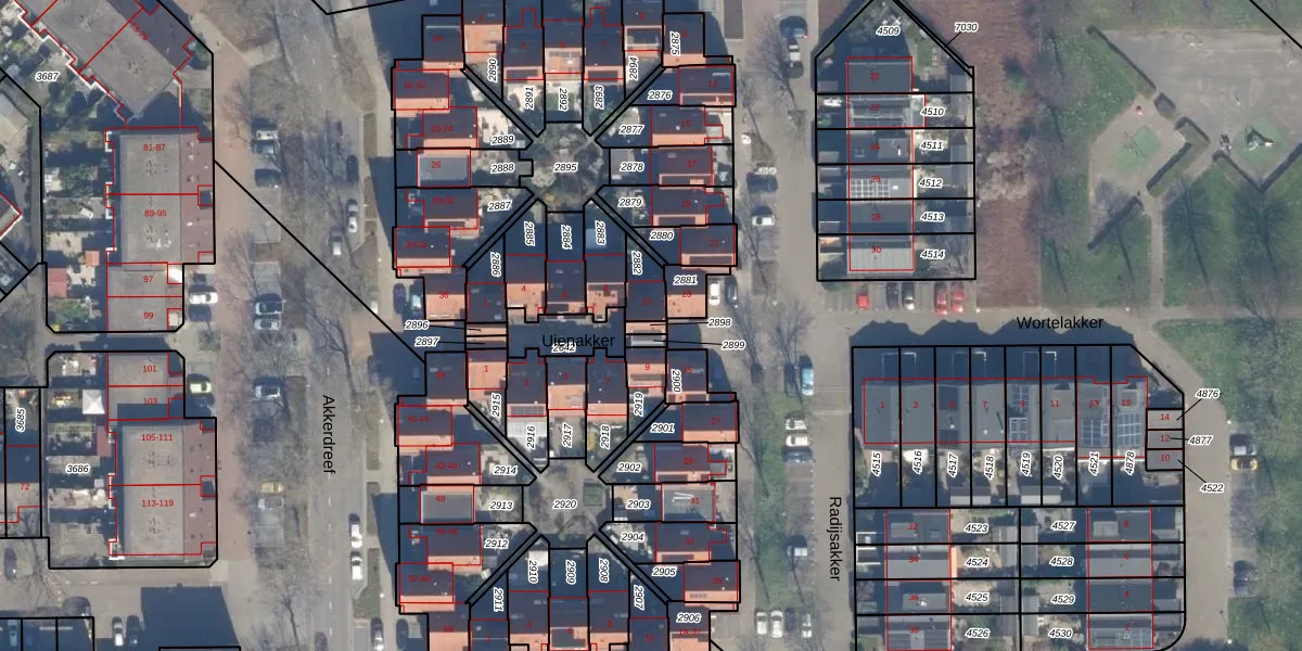 Gebruik de zoekbalk of klik op een perceel om informatie over het perceel te bekijken.
