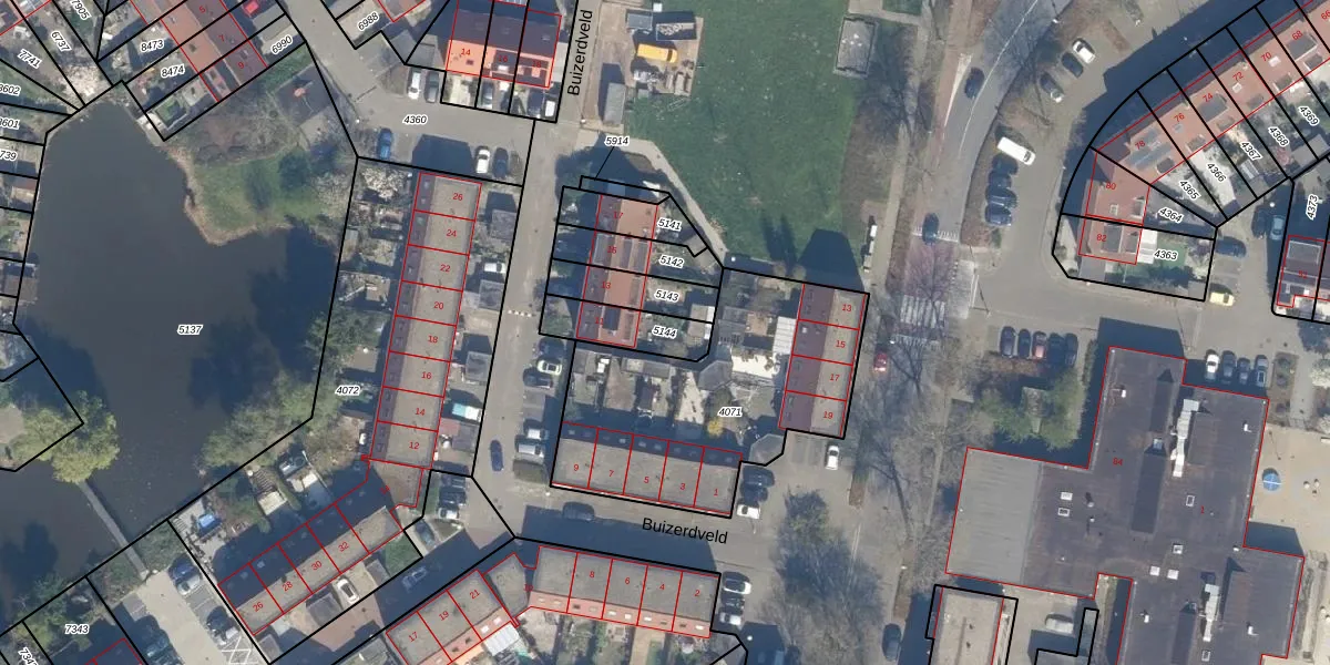 Gebruik de zoekbalk of klik op een perceel om informatie over het perceel te bekijken.