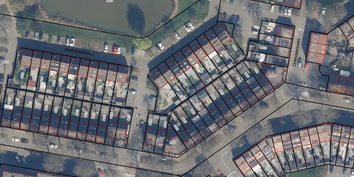 Gebruik de zoekbalk of klik op een perceel om informatie over het perceel te bekijken.