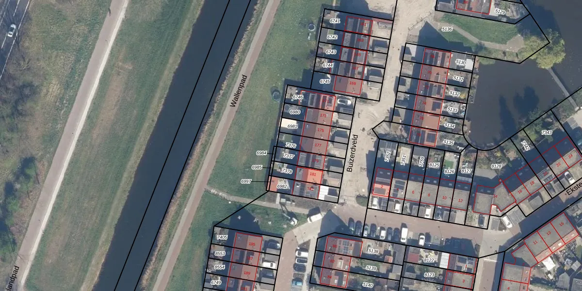 Gebruik de zoekbalk of klik op een perceel om informatie over het perceel te bekijken.