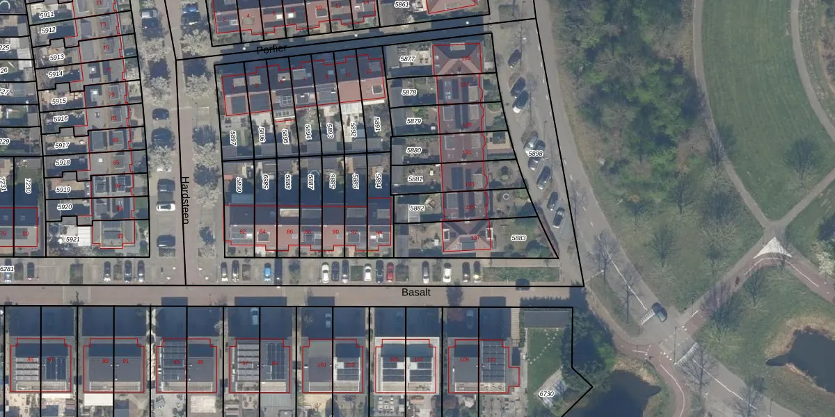 Gebruik de zoekbalk of klik op een perceel om informatie over het perceel te bekijken.