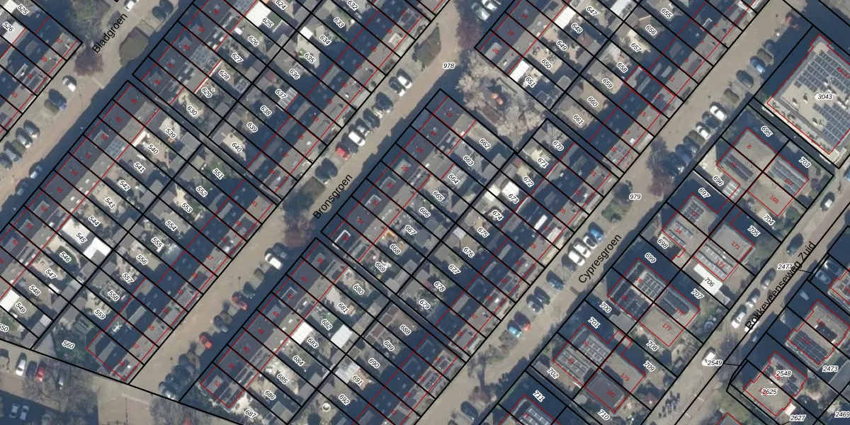 Gebruik de zoekbalk of klik op een perceel om informatie over het perceel te bekijken.