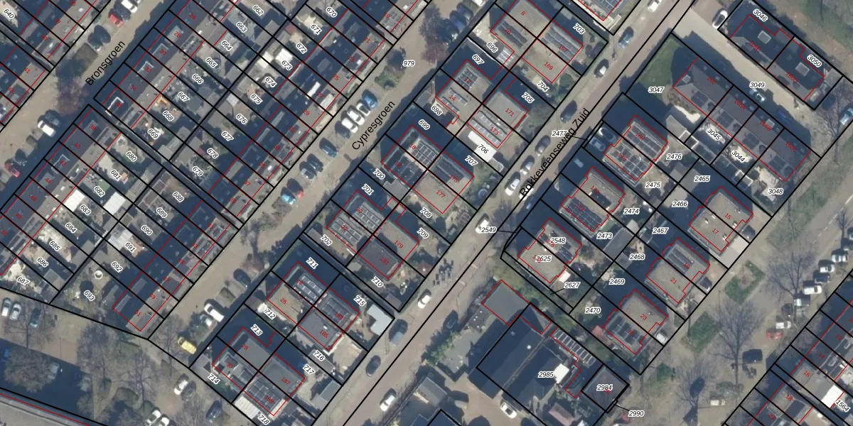 Gebruik de zoekbalk of klik op een perceel om informatie over het perceel te bekijken.