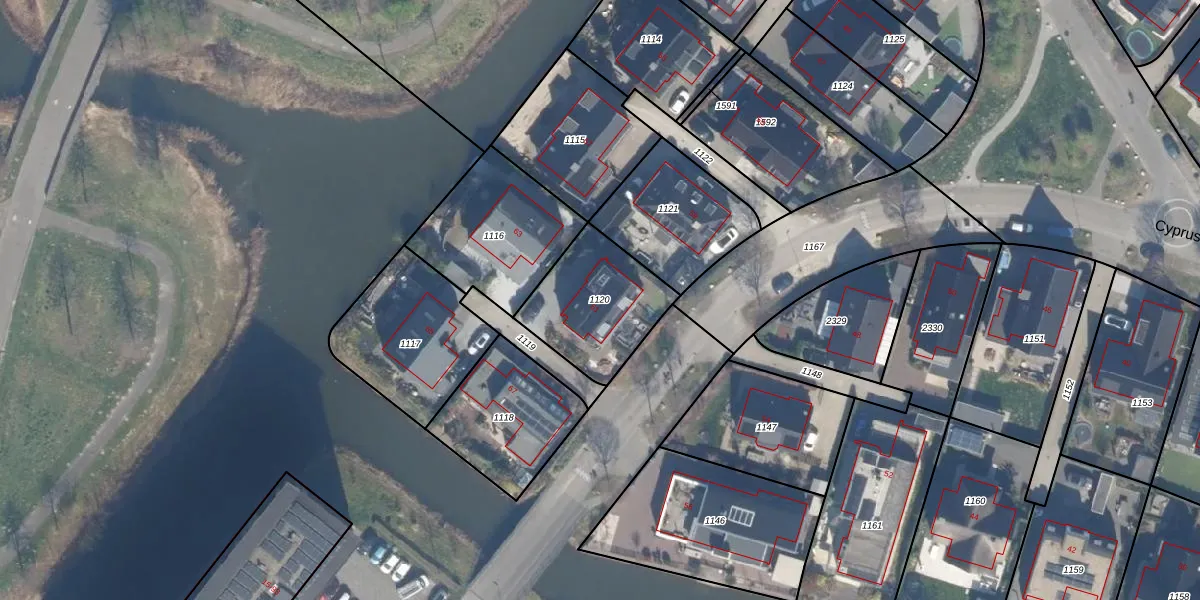 Gebruik de zoekbalk of klik op een perceel om informatie over het perceel te bekijken.