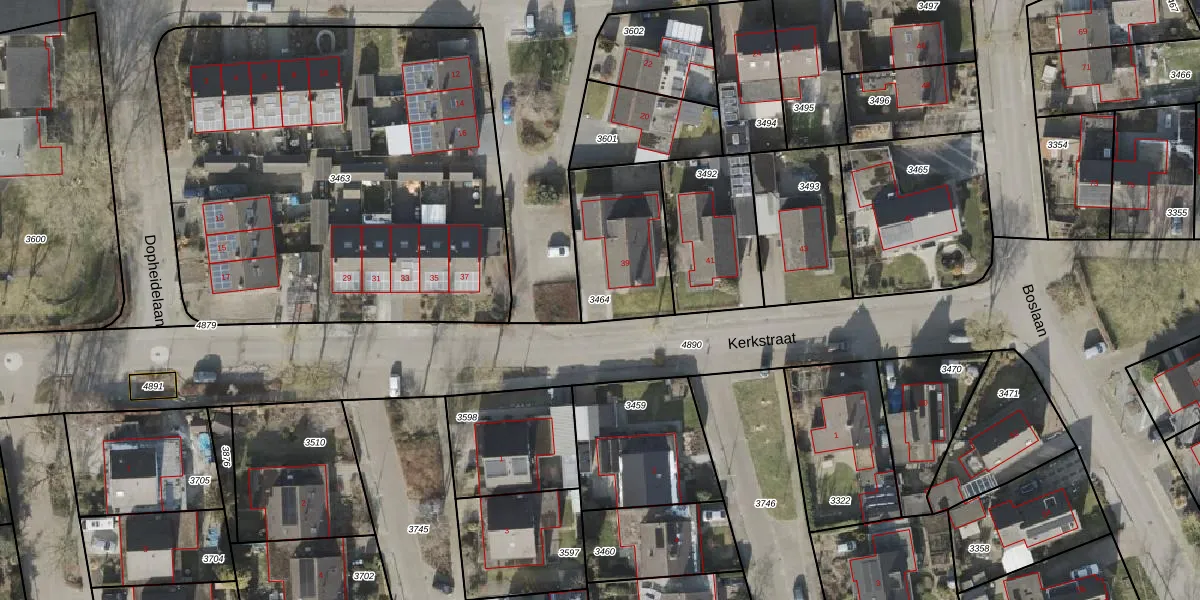 Gebruik de zoekbalk of klik op een perceel om informatie over het perceel te bekijken.