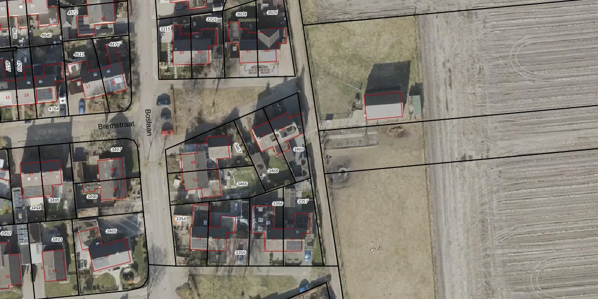 Gebruik de zoekbalk of klik op een perceel om informatie over het perceel te bekijken.