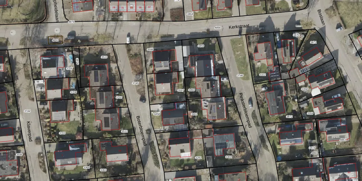 Gebruik de zoekbalk of klik op een perceel om informatie over het perceel te bekijken.