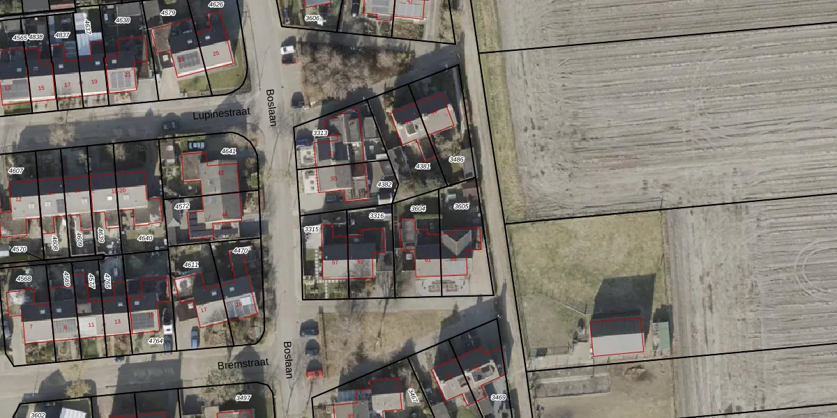 Gebruik de zoekbalk of klik op een perceel om informatie over het perceel te bekijken.