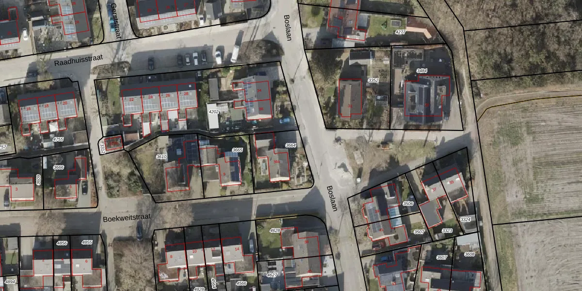 Gebruik de zoekbalk of klik op een perceel om informatie over het perceel te bekijken.