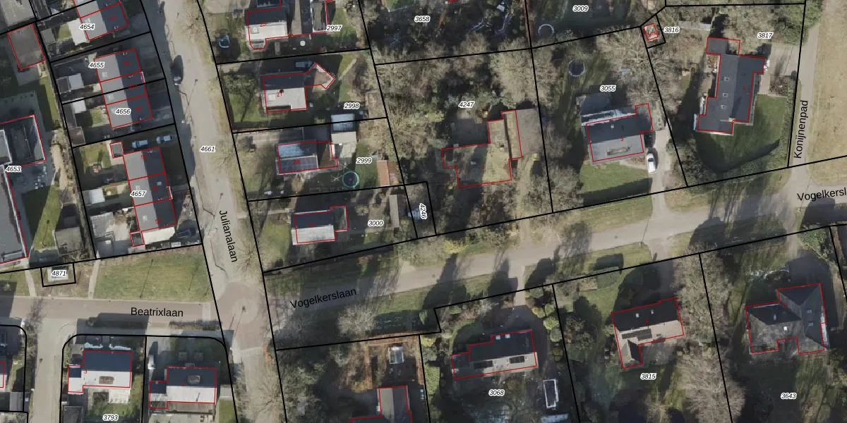 Gebruik de zoekbalk of klik op een perceel om informatie over het perceel te bekijken.
