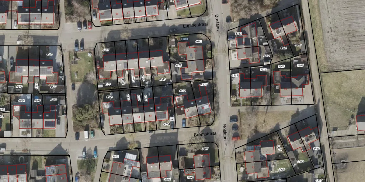 Gebruik de zoekbalk of klik op een perceel om informatie over het perceel te bekijken.