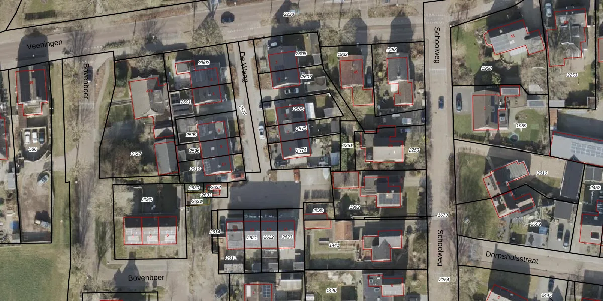 Gebruik de zoekbalk of klik op een perceel om informatie over het perceel te bekijken.