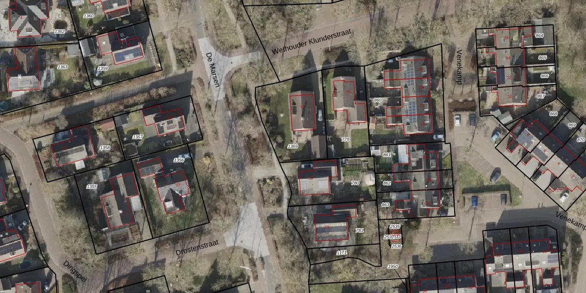Gebruik de zoekbalk of klik op een perceel om informatie over het perceel te bekijken.