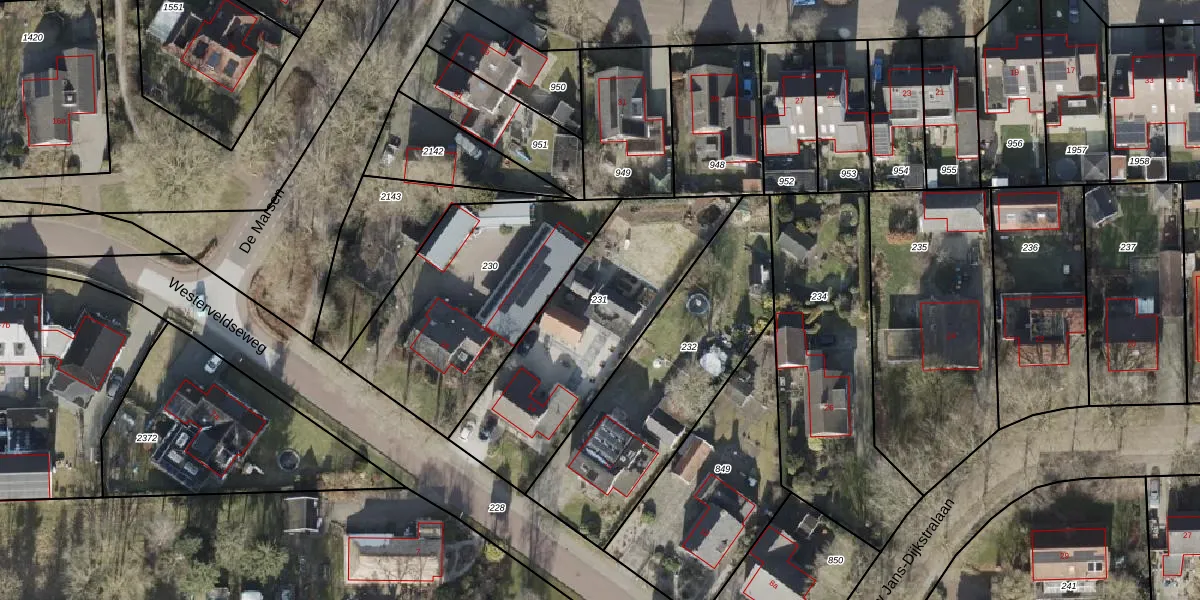 Gebruik de zoekbalk of klik op een perceel om informatie over het perceel te bekijken.