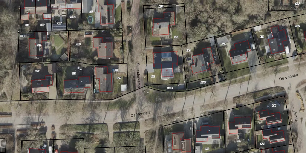Gebruik de zoekbalk of klik op een perceel om informatie over het perceel te bekijken.