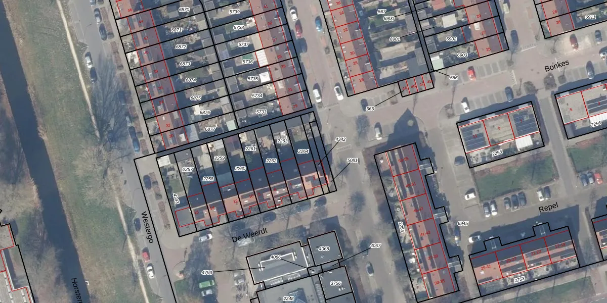 Gebruik de zoekbalk of klik op een perceel om informatie over het perceel te bekijken.