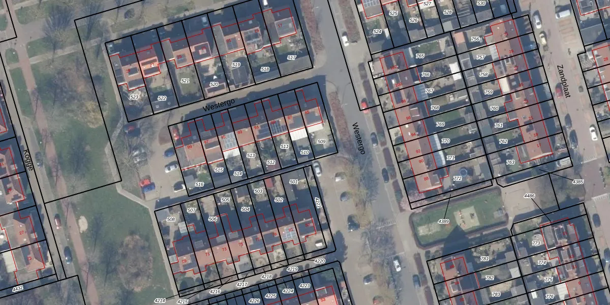 Gebruik de zoekbalk of klik op een perceel om informatie over het perceel te bekijken.