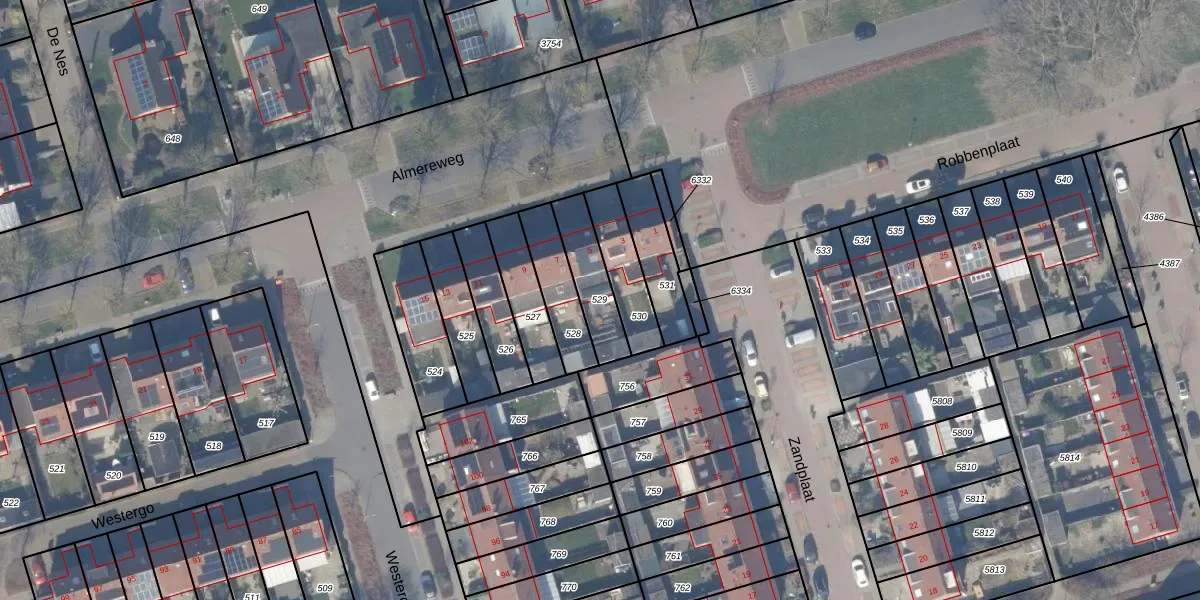Gebruik de zoekbalk of klik op een perceel om informatie over het perceel te bekijken.
