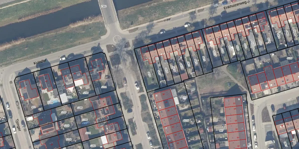 Gebruik de zoekbalk of klik op een perceel om informatie over het perceel te bekijken.