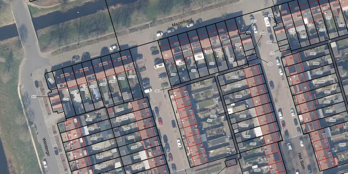 Gebruik de zoekbalk of klik op een perceel om informatie over het perceel te bekijken.