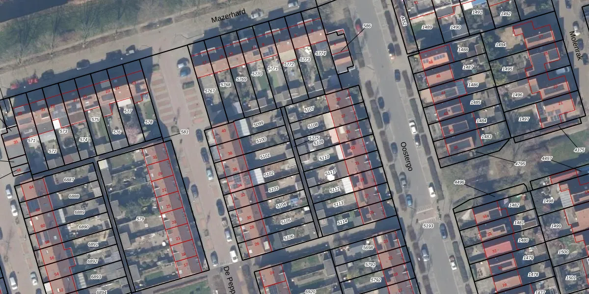 Gebruik de zoekbalk of klik op een perceel om informatie over het perceel te bekijken.
