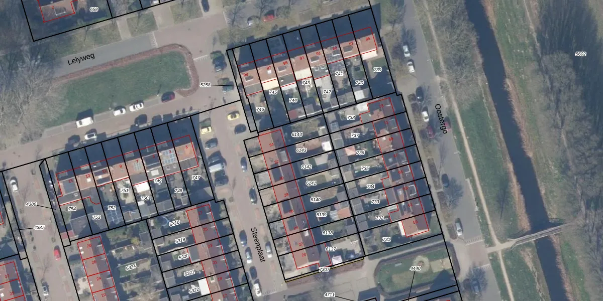 Gebruik de zoekbalk of klik op een perceel om informatie over het perceel te bekijken.