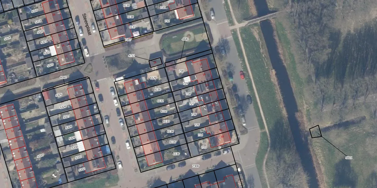 Gebruik de zoekbalk of klik op een perceel om informatie over het perceel te bekijken.