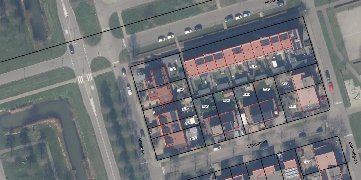 Gebruik de zoekbalk of klik op een perceel om informatie over het perceel te bekijken.