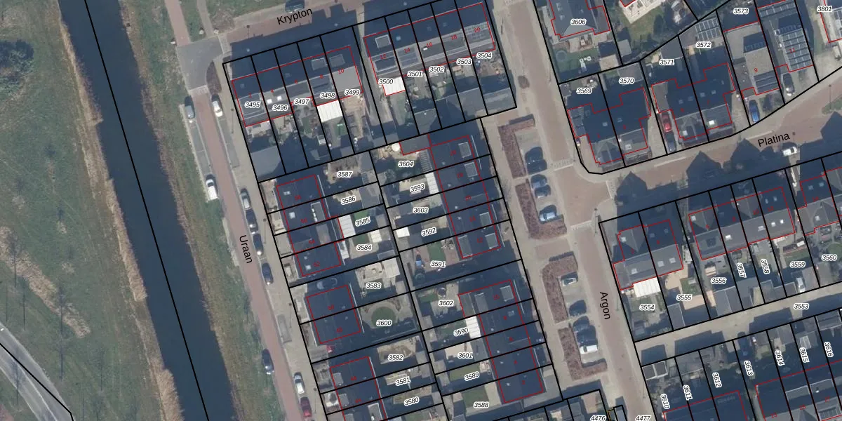 Gebruik de zoekbalk of klik op een perceel om informatie over het perceel te bekijken.