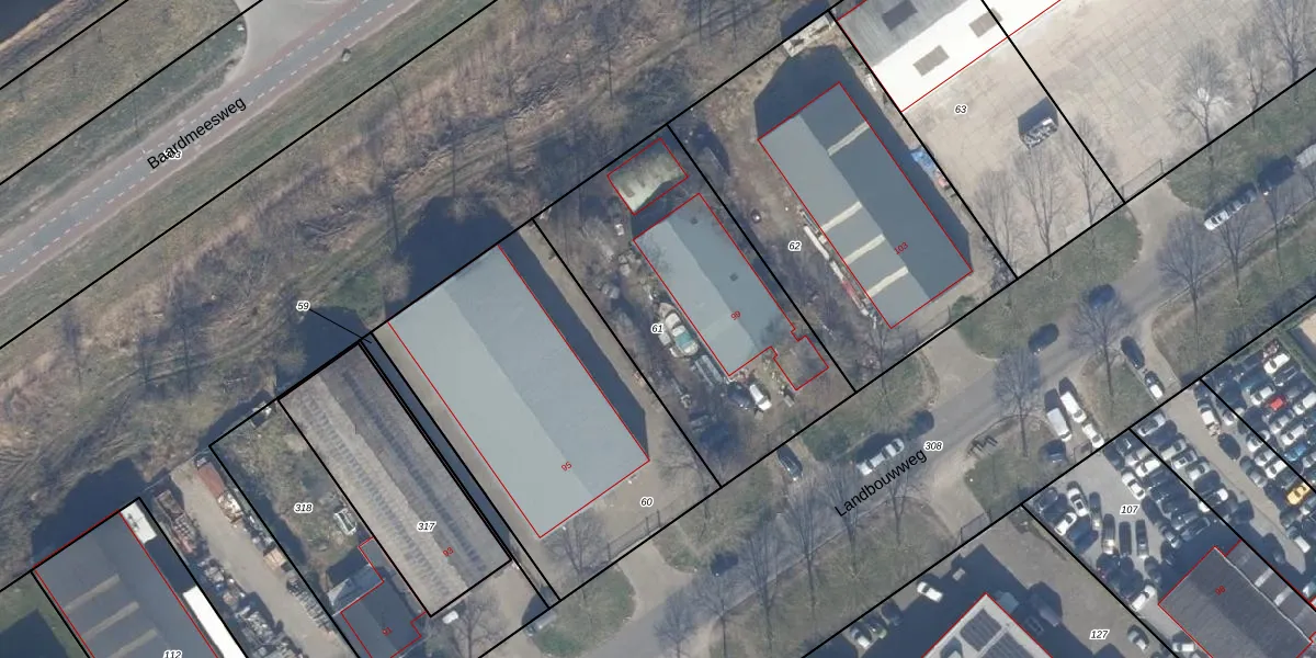 Gebruik de zoekbalk of klik op een perceel om informatie over het perceel te bekijken.
